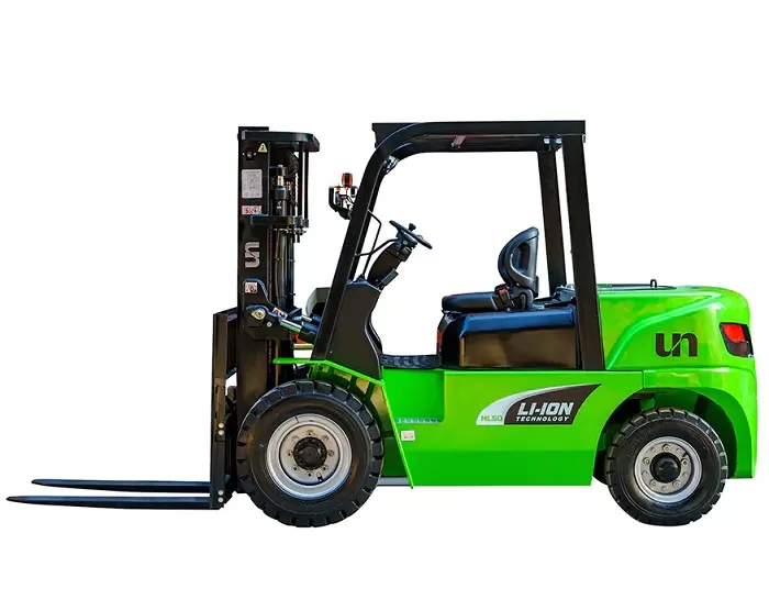 Крупнотоннажный вилочный погрузчик серии NL с литиевыми батареями, грузоподъемностью от 4000 до 5000 кг, использует конструкцию вилочного погрузчика UN с внутренним сгоранием с прочным шасси, рамой, противовесом и мачтой.